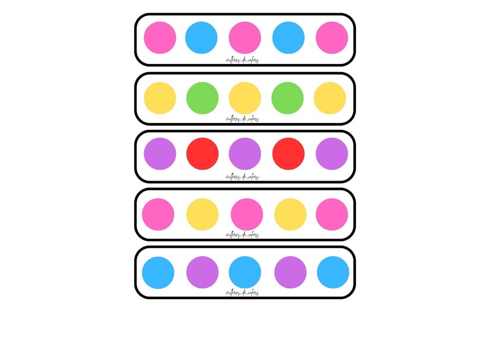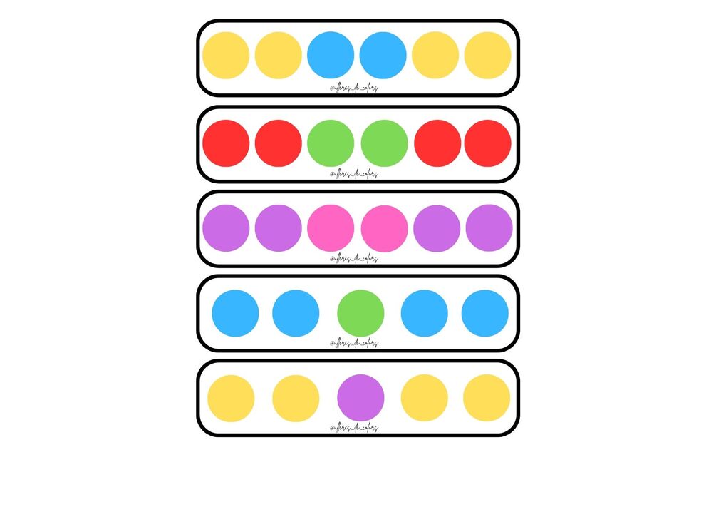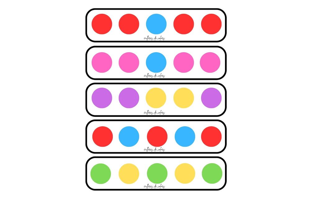 Seriaciones con distintos niveles de dificultad para hacer con pompones de colores y así trabajar la motricidad fina también.